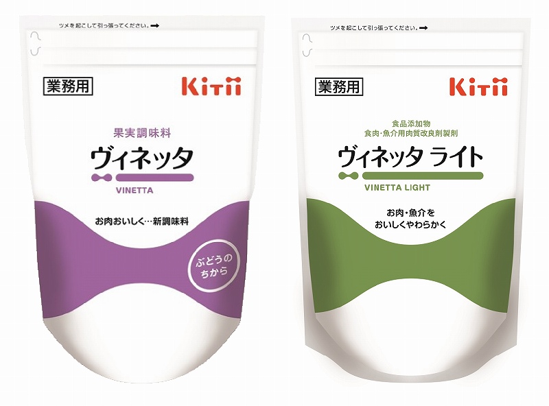 株式会社キティーが提供する「ヴィネッタ」はブドウ果汁を発酵させた有機酸と食塩を使用して、肉や魚介を自然な食感でおいしくやわらかくする調理料です。有機酸と食塩の効果でお肉の保水力を最大化し、加熱調理時のクッキングロスを抑制する事でやわらかくなります。